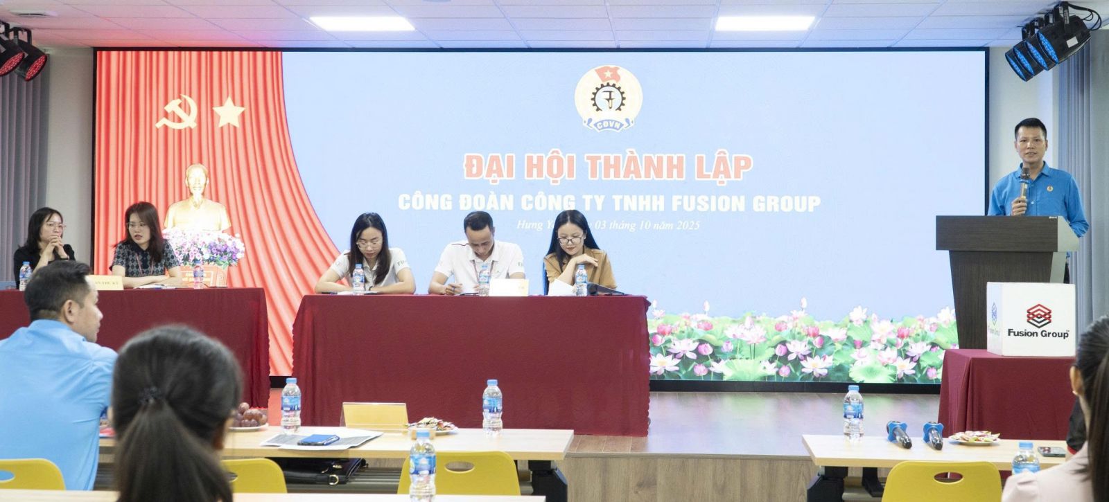 Hoà chung trong không khí hân hoan Chào mừng Đại hội Đại biểu Đảng bộ tỉnh Hưng Yên lần thứ I, nhiệm kỳ 2025-2030, sáng ngày 03/10/2025 tại Khu Công nghiệp Yên Mỹ, Liên đoàn Lao động tỉnh Hưng Yên tổ chức Đại hội thành lập Công đoàn cơ sở Công ty TNHH FUSION GROUP.
