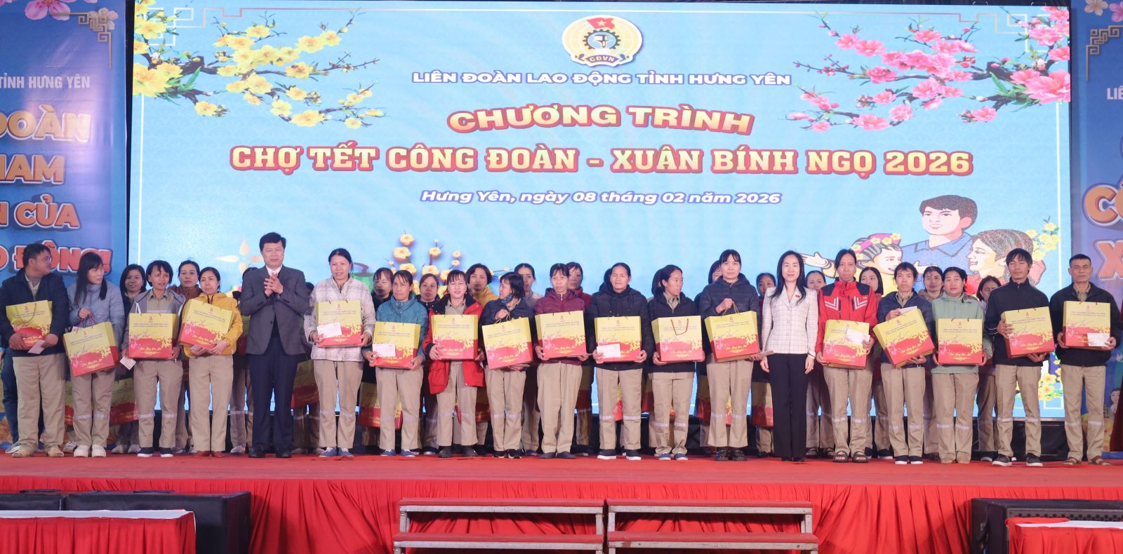 Trong không khí hân hoan chuẩn bị đón Tết Nguyên đán Bính Ngọ 2026, sáng ngày 08.02, tại Trung tâm dịch vụ tổng hợp xã Yên Mỹ, Liên đoàn Lao động tỉnh Hưng Yên tổ chức Chương trình “Chợ Tết Công đoàn – Xuân 2026”. Đây là hoạt động có ý nghĩa chính trị – xã hội sâu sắc, thể hiện vai trò, trách nhiệm của tổ chức Công đoàn đối với đoàn viên, công nhân, người lao động trong dịp Tết Nguyên đán.