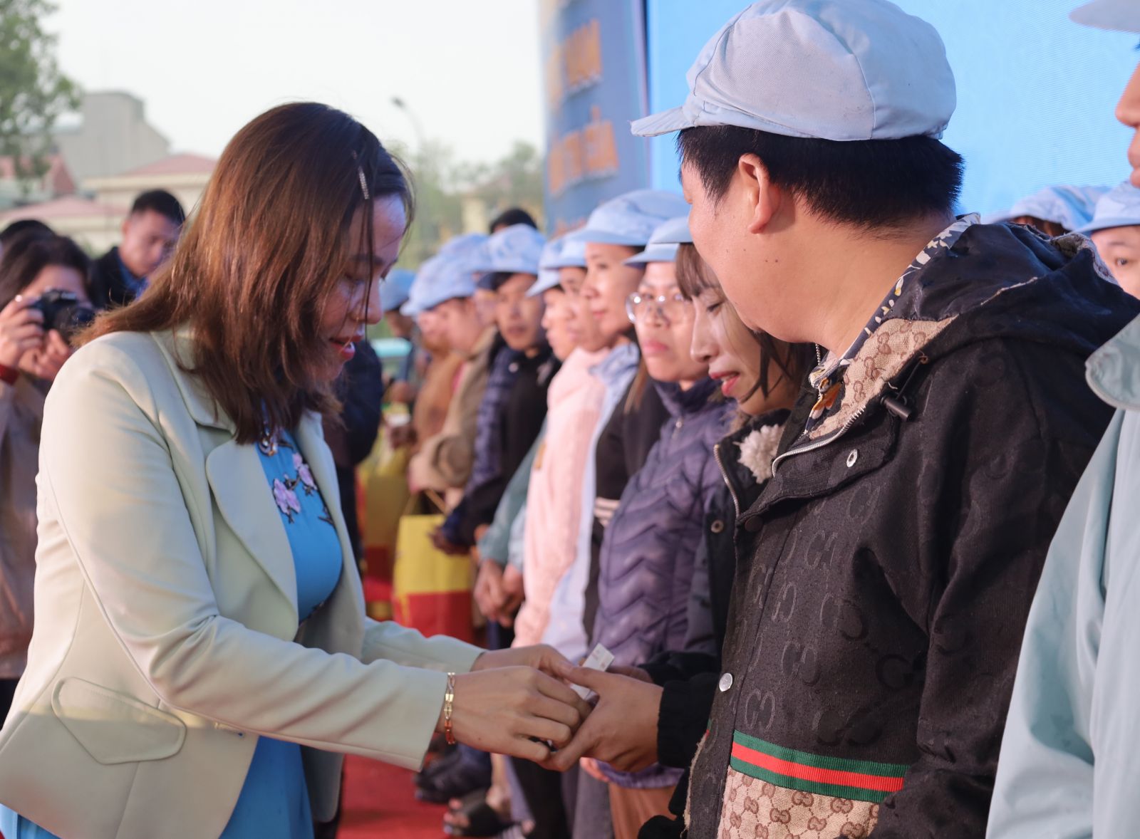 Ảnh: Đ/c Đỗ Thị Hương, Chủ tịch Liên đoàn Lao động tỉnh trao quà cho đoàn viên, người lao động tại Chương trình
