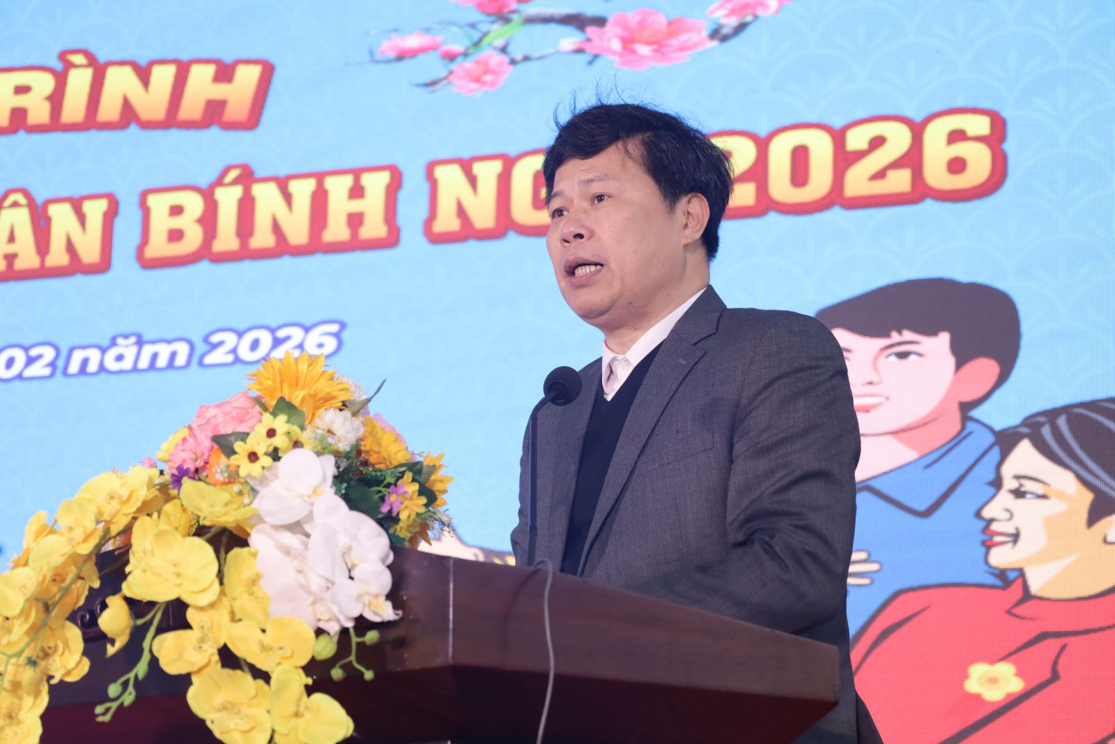 Phát biểu tại chương trình, đồng chí Trần Quốc Toản, Phó Bí thư Thường trực Tỉnh ủy, Chủ tịch Ủy ban MTTQ Việt Nam tỉnh biểu dương và đánh giá cao sự chủ động, tinh thần trách nhiệm, sáng tạo của Liên đoàn Lao động tỉnh và các cấp Công đoàn trong tỉnh trong công tác chăm lo đời sống vật chất, tinh thần cho đoàn viên, công nhân, người lao động, đặc biệt là chương trình “Chợ Tết Công đoàn - Xuân Bính Ngọ 2026”, góp phần cùng các cấp ủy, chính quyền, doanh nghiệp trong thực hiện công tác an sinh xã hội, thể hiện sự quan tâm, chia sẻ, động viên kịp thời để đoàn viên, công nhân, người lao động được vui xuân, đón Tết; đồng thời lan tỏa thông điệp đoàn kết, chia sẻ với tinh thần “Tất cả đoàn viên, người lao động đều có Tết, vui Tết”, “Không ai bị bỏ lại phía sau” trong cộng đồng và toàn xã hội.