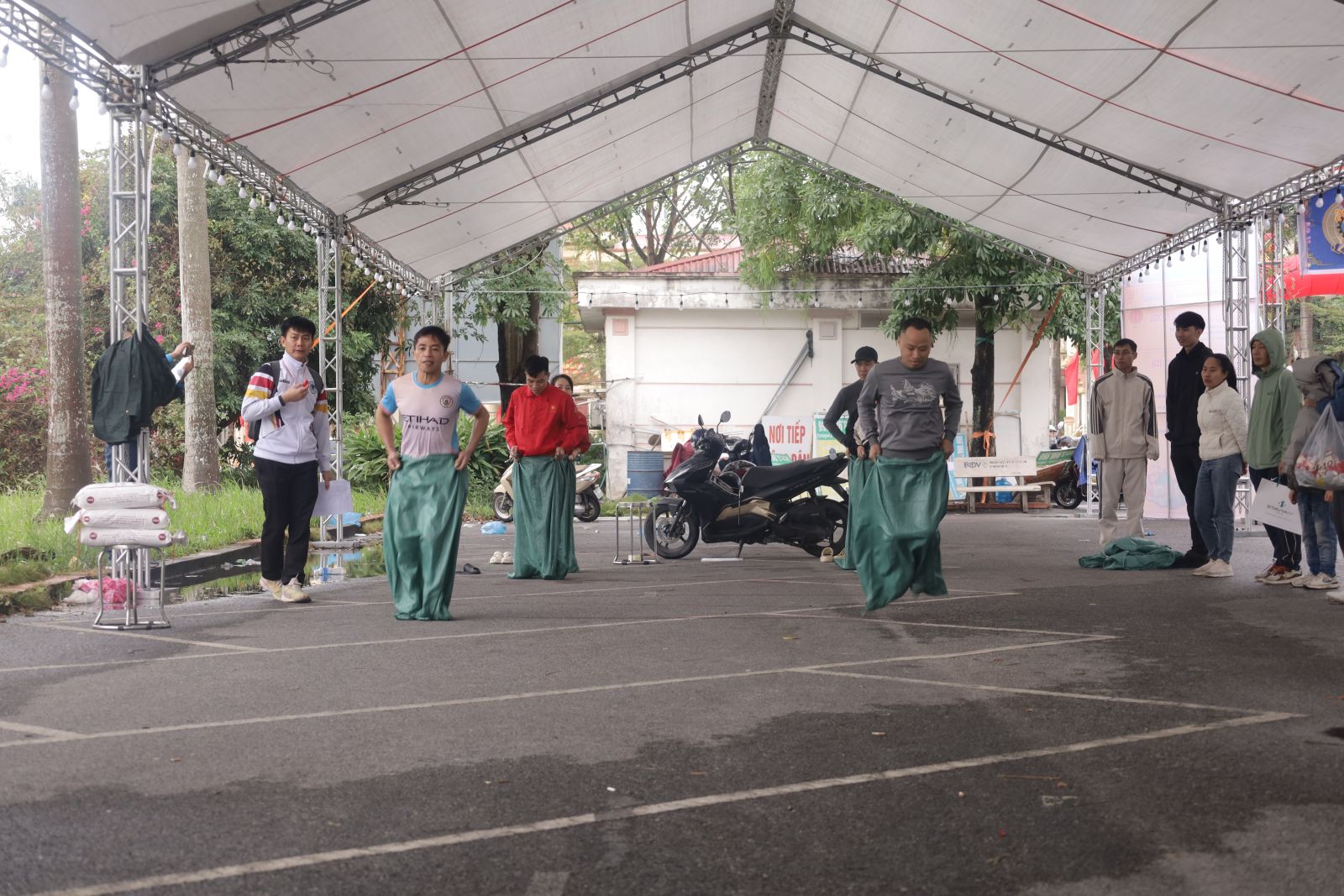 Ảnh: Đoàn viên, người lao động tham gia trò chơi nhảy bao bố