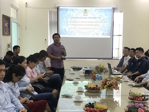 Đ/c Nguyễn Thị Thanh Tuyết (đứng hàng thứ nhất thứ 6,áo hoa từ trái sang), Tỉnh ủy viên, Ủy viên BCH Tổng Liên đoàn Lao động Việt Nam, chủ tịch LĐLĐ tỉnh cùng đ/c Chủ tịch LĐLĐ huyện Văn Lâm và Lãnh đạo Cty tặng quà cho công nhân lao động có thành tích xuất sắc tiêu biểu trong lao động sản xuất.