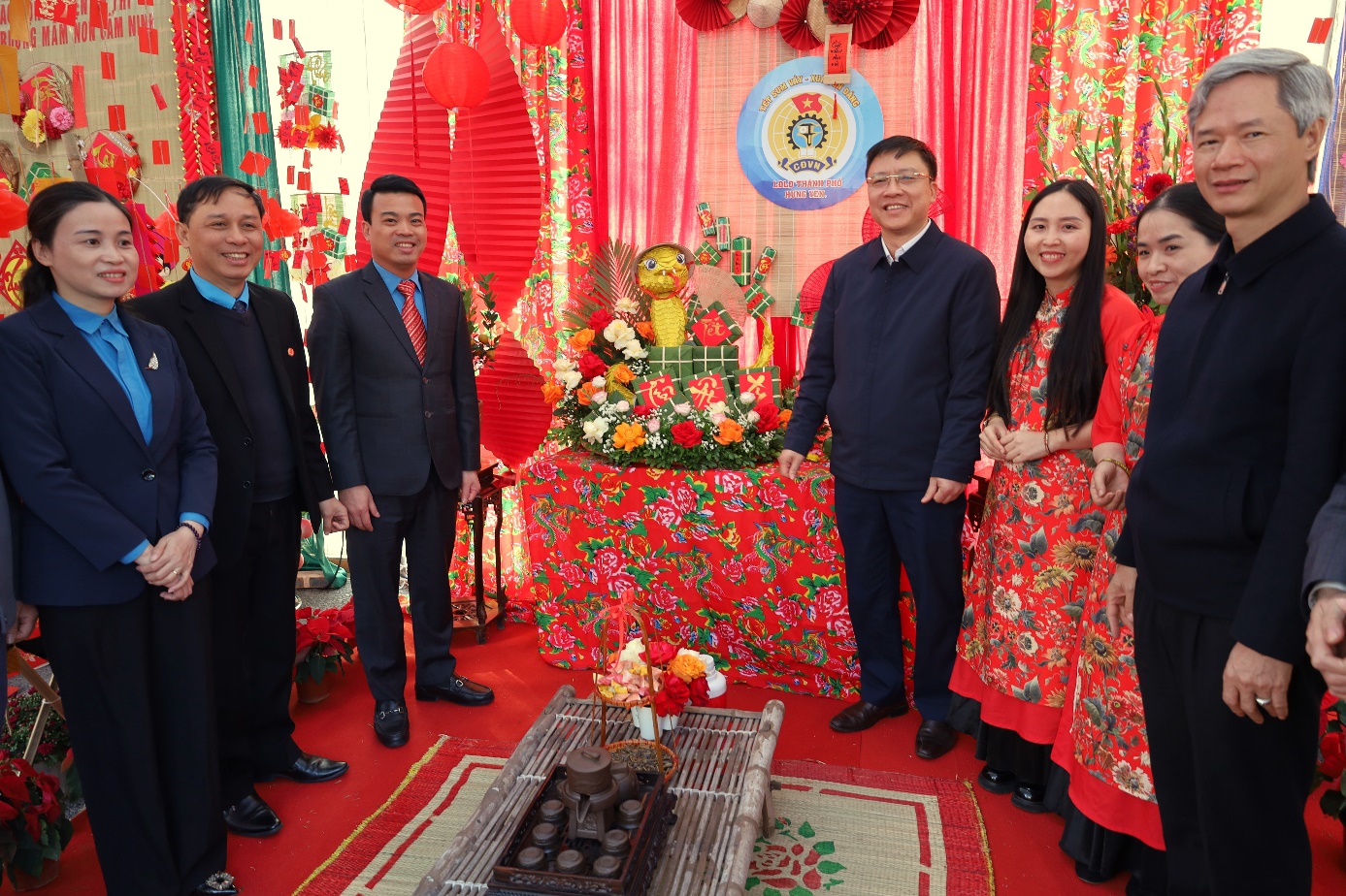 Tại buổi khai mạc, các đồng chí đại biểu đã cắt băng khai trương “Chợ Tết Công đoàn” năm 2025, nhằm phục vụ nhu cầu mua sắm hàng hóa phục vụ tết của đoàn viên, người lao động với quy mô 50 gian hàng bán các loại sản phẩm, bảo đảm chất lượng có giá ưu đãi từ 10- 50% trở lên và 2 gian hàng 0 đồng, cùng các gian hàng giảm giá, gian hàng ẩm thực do Liên đoàn Lao động tỉnh phối hợp với các doanh nghiệp tổ chức. LĐLĐ tỉnh phát 400 phiếu mua hàng không đồng, tổ chức giao lưu bốc thăm trúng thưởng với nhiều phần quà có giá trị như xe máy, ti vi, tủ lạnh, xe đạp, nồi cơm điện…với tổng giá trị giải trên 100 triệu đồng; Chương trình đã thu hút hơn 1 nghìn đoàn viên, người lao động tham gia các hoạt động…