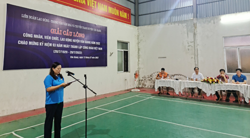 Đồng chí Hồ Thị Vân Đông- HUV, Chủ tịch LĐLĐ huyện khai mạc Giả cầu lông CNVCLĐ huyện Văn Giang