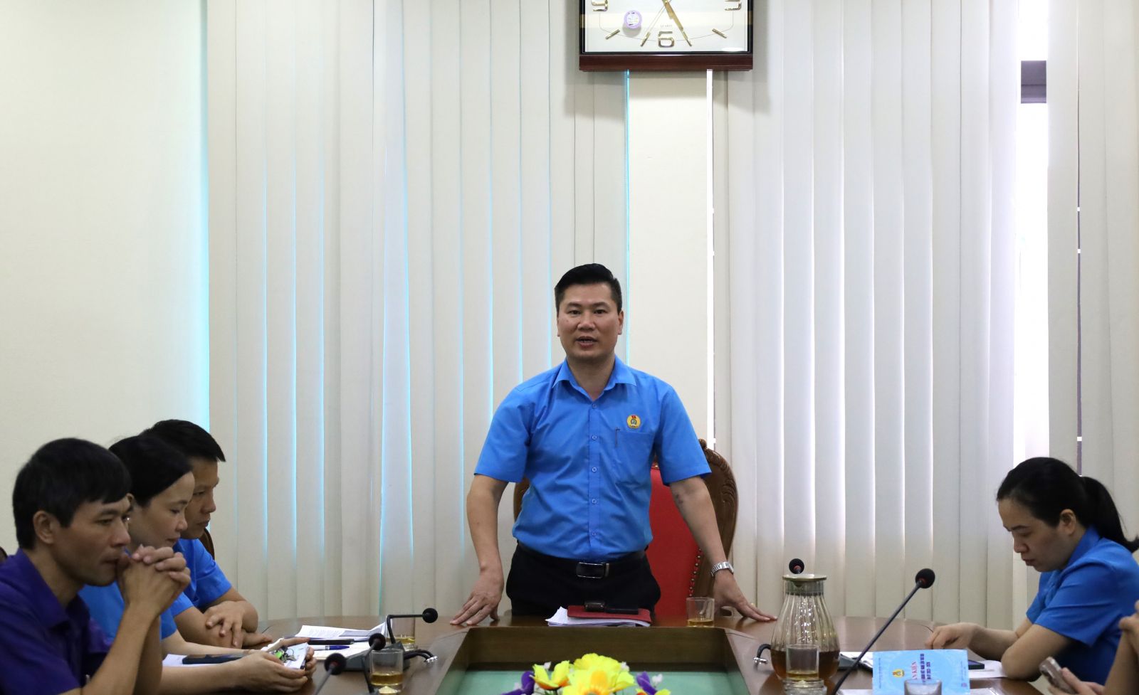 Đồng chí Hoàng Xuân Hào – Phó Chủ tịch thường trực LĐLĐ tỉnh phát biểu tại điểm cầu LĐLĐ tỉnh Hưng Yên